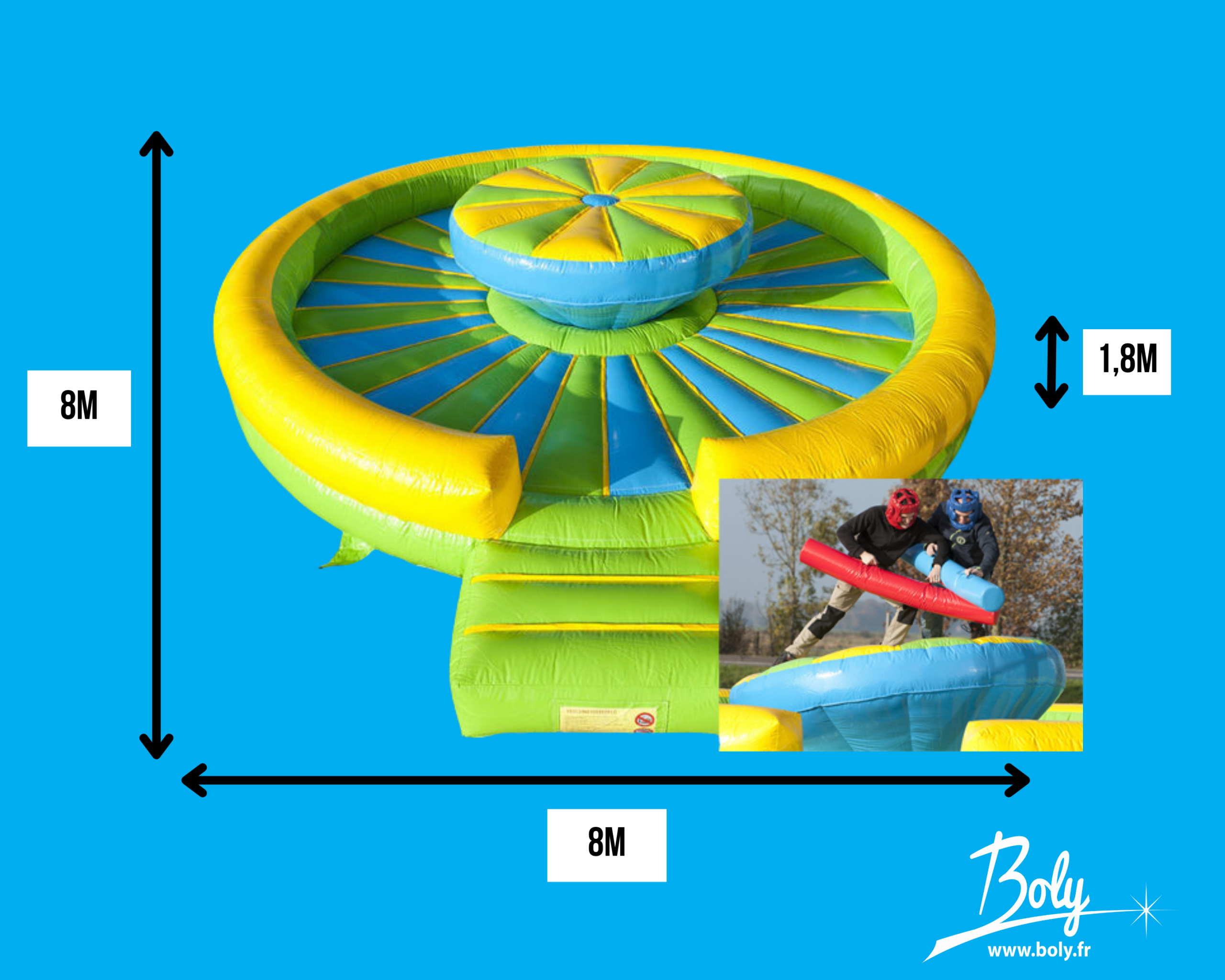 Plongez dans le monde du combat instable de gladiateurs, une attraction amusante et sportive qui ajoute une dose de folie à l’action! Cette plateforme instable crée un défi unique, obligeant les gladiateurs à combattre tout en travaillant sur leur équilibre. Les joueurs doivent rivaliser pour rester debout sur cette surface oscillante, garantissant une expérience de jeu excitante pour les participants et une atmosphère divertissante pour les spectateurs. Que le meilleur équilibriste gagne!
